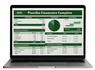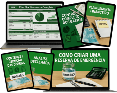 Você vai receber a Planilha Financeira Pessoal Completa, o passo a passo, que já ajudou centenas de pessoas a eliminar suas dívidas, economizar dinheiro e dominar suas finanças.